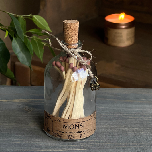 Rinkinys ATSIPALAIDUOK - aromatinė sojų žvakė, degtukai indelyje