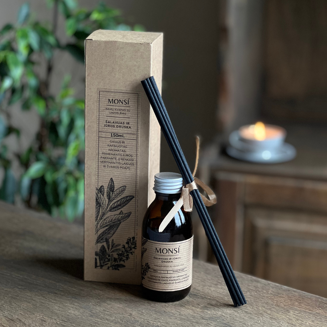 150ml. namų kvapas su lazdelėmis Šalavijas + jūros druska