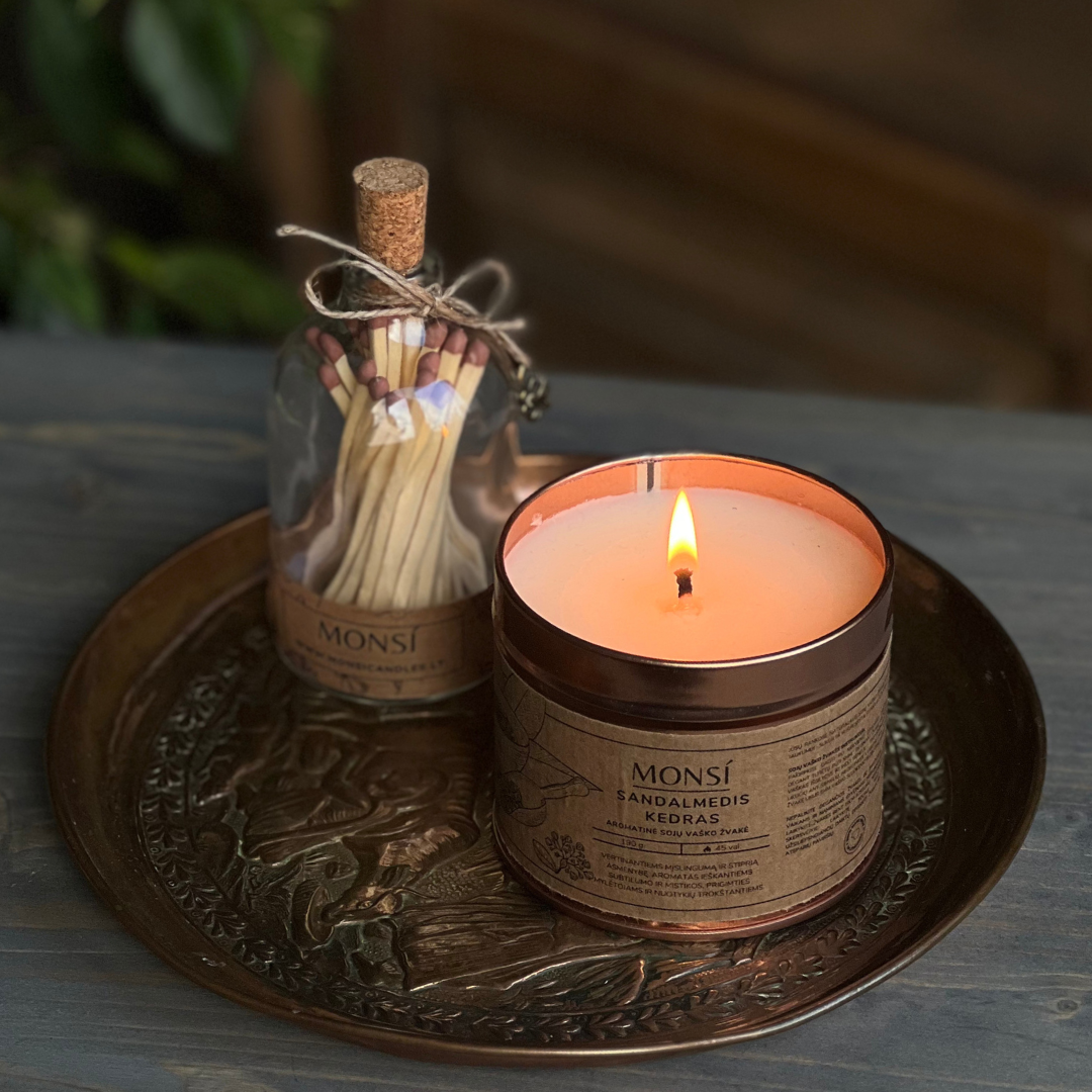 Aromatinė sojų vaško žvakė metaliniame indelyje tiems, kurie vertina subtilumą, jaukumą ir natūralius kvapus.
